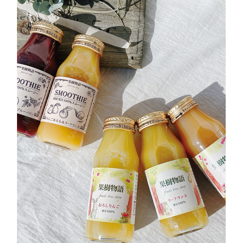 果樹物語(ラ フランス・もも・おろしりんご)(180ml)・スムージー(りんご&もも&ラ フランス・ぶどう&りんご&ブルーベリー)(180ml)×各2 |