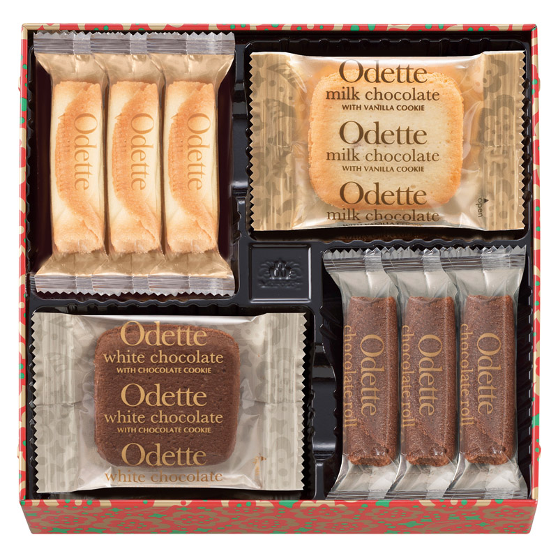 オデット(ミルクチョコレート・ホワイトチョコレート)×各3、バニラロール・チョコレートロール×各5