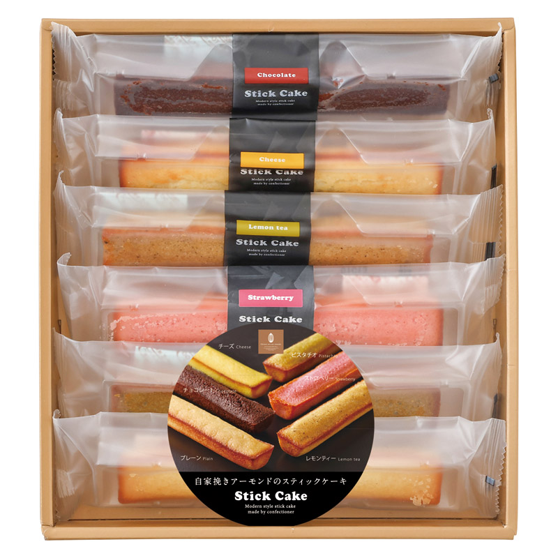 厳選したアーモンドプードルを使ってしっとり食感に焼き上げた、スティックタイプのフィナンシェ。全6種類のアソートギフトです。