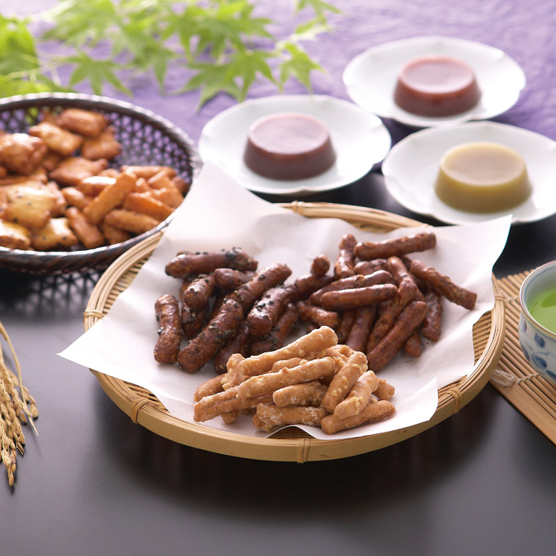 | 内容 | 蜂蜜黒糖かりんとう(40g)・あられ(海老・海苔・味噌)(12g)・羊かん(抹茶・練り・小倉)(60g)×各2、黒胡麻かりんとう(40g)・落花生かりんとう(40g)×各1 |