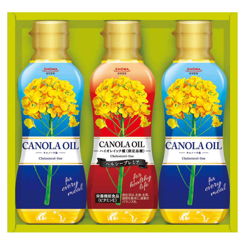 キャノーラ油に限定品種なたね(ハイオレイック種)を使用したヘルシープレミアを詰合せました。