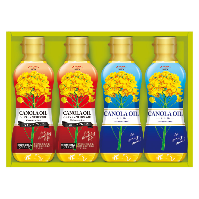 キャノーラ油に限定品種なたね(ハイオレイック種)を使用したヘルシープレミアを詰合せました。