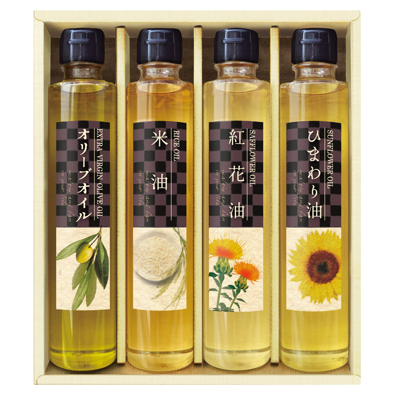 エクストラバージンオリーブオイル(165g)・紅花油(165g)・米油(165g)・ひまわり油(165g)×各1