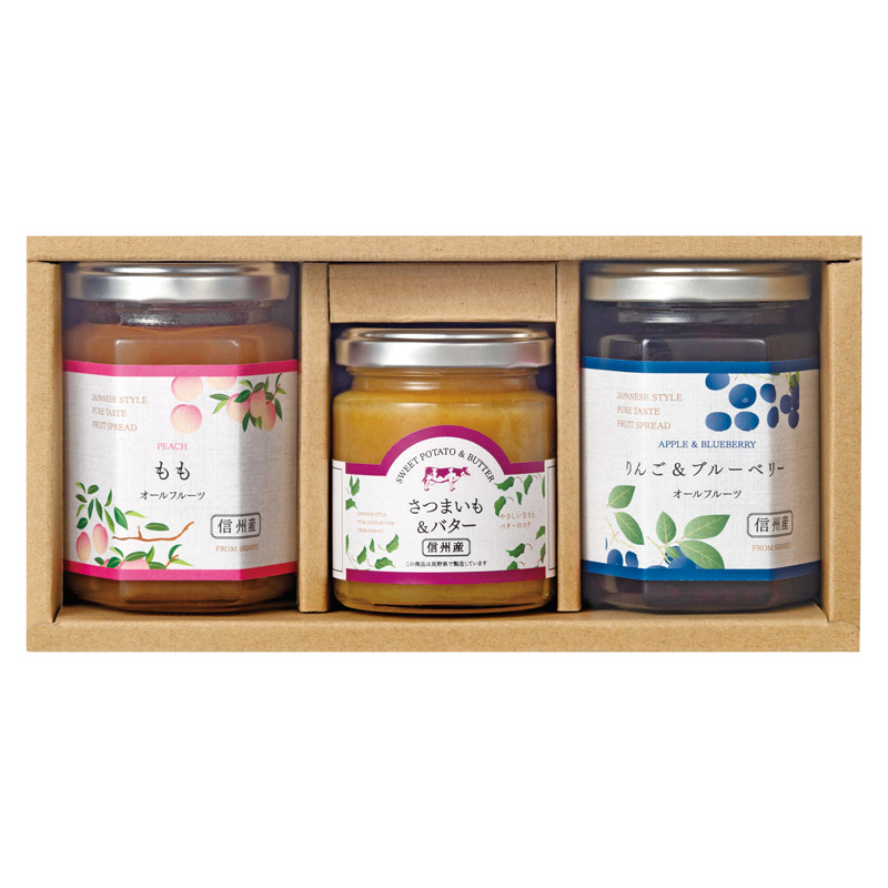 ももスプレッド(140g)・りんご&ブルーベリースプレッド(140g)・さつまいも&バターペースト(110g)×各1