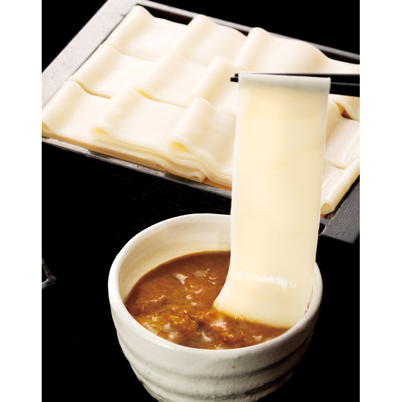 群馬のご当地幅広麺 鬼ひも川うどんとモチモチ食感の花山うどんを、かつおだしと鶏だしが香る純和風カレーつゆでお召し上がり下さい。