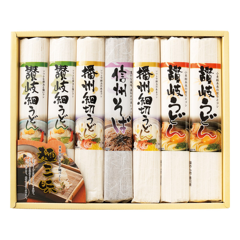 讃岐うどん(180g)・讃岐細うどん(150g)・播州細切りうどん(150g)×各2、信州そば(120g)×1