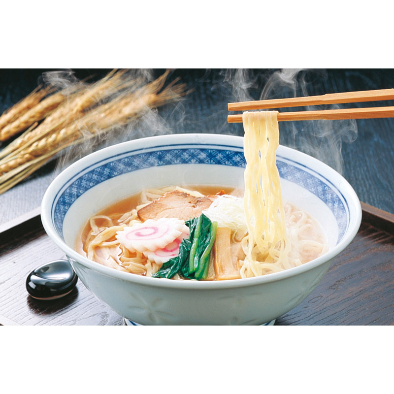 蔵のまち“喜多方”より本場の味をお届け 喜多方ラーメンの特長ともいえる平打ちちぢれ麺は、ツルツルとしてコシがあり醤油スープとの相性が抜群です。
