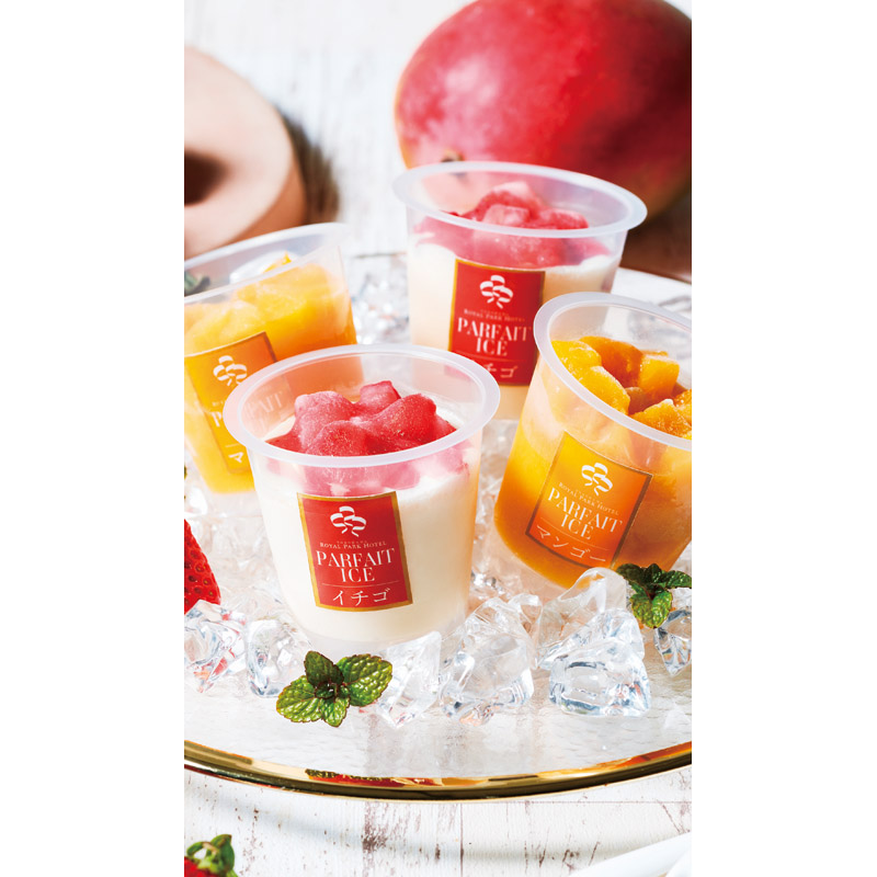 程よい甘さと酸味が特徴のパフェアイス 横浜ロイヤルパークホテル監修のイチゴとマンゴーのパフェアイスセットです。