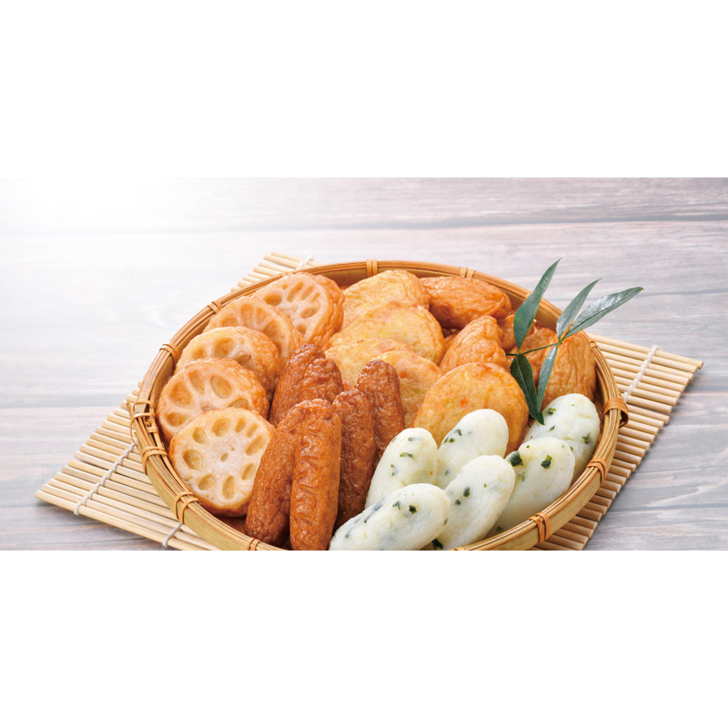 | 内容 | つけあげ(20g)・れんこん天(43g)・しそ天(20g)・いわし天(20g)・野菜天(25g)×各6 |