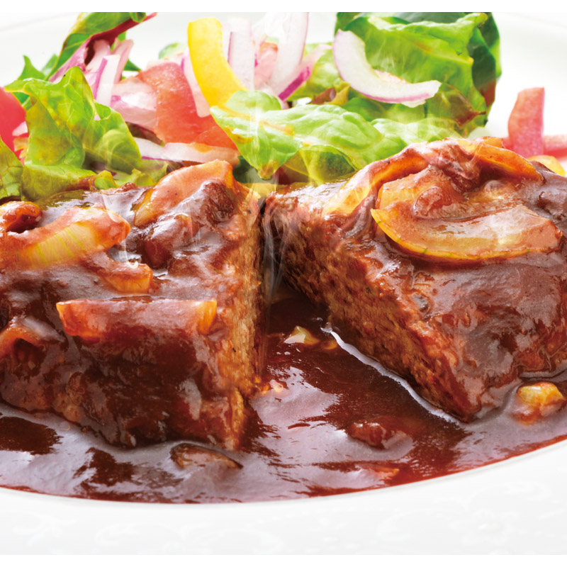 米沢牛と国産豚を使用したお肉の旨みをお楽しみいただけるハンバーグです。直営レストランのレシピで仕上げた深いコクのデミグラスソースでお楽しみいただけます。 |