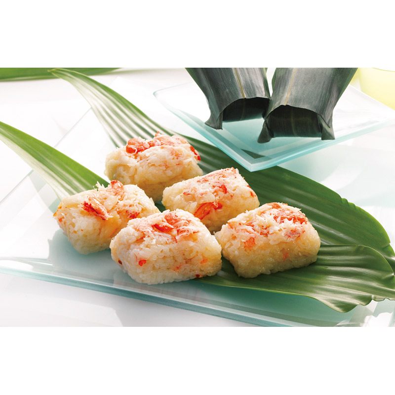 もち米とうるち米を程よくブレンドし、かにのほぐし身を混ぜ込み炊き上げた蟹めしに本ずわいがにを盛付けました。本ずわいがにの香りと食感を十分にお楽しみいただけます。