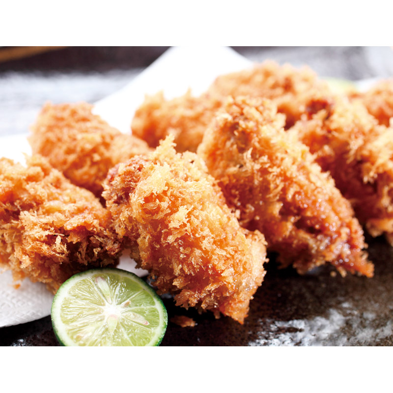 サクッとしたオリジナルのパン粉をつかい、一粒ずつ丁寧に仕上げました。大粒のかきを使用しておりますので、食べ応えも抜群です。