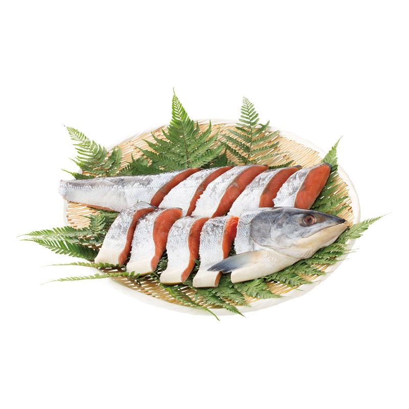北海道で水揚げされた新鮮な秋鮭を新巻加工し、ご家庭でご利用しやすいように切身加工して真空パックでお届けいたします。