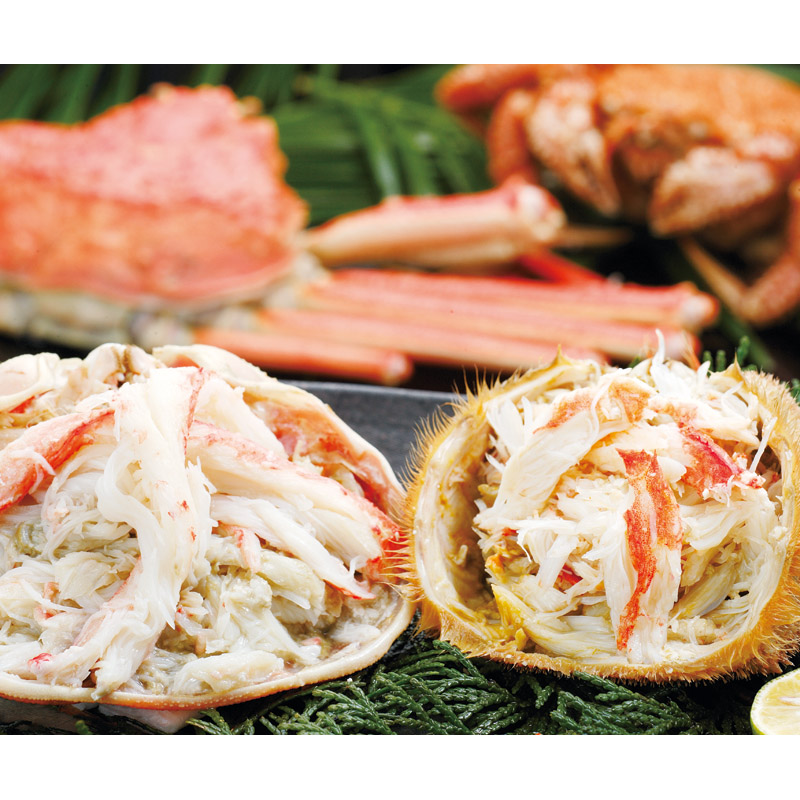 食べやすさ抜群のずわいがにと濃厚な味が自慢の北海道産毛ガニをセットにしてお届けします。