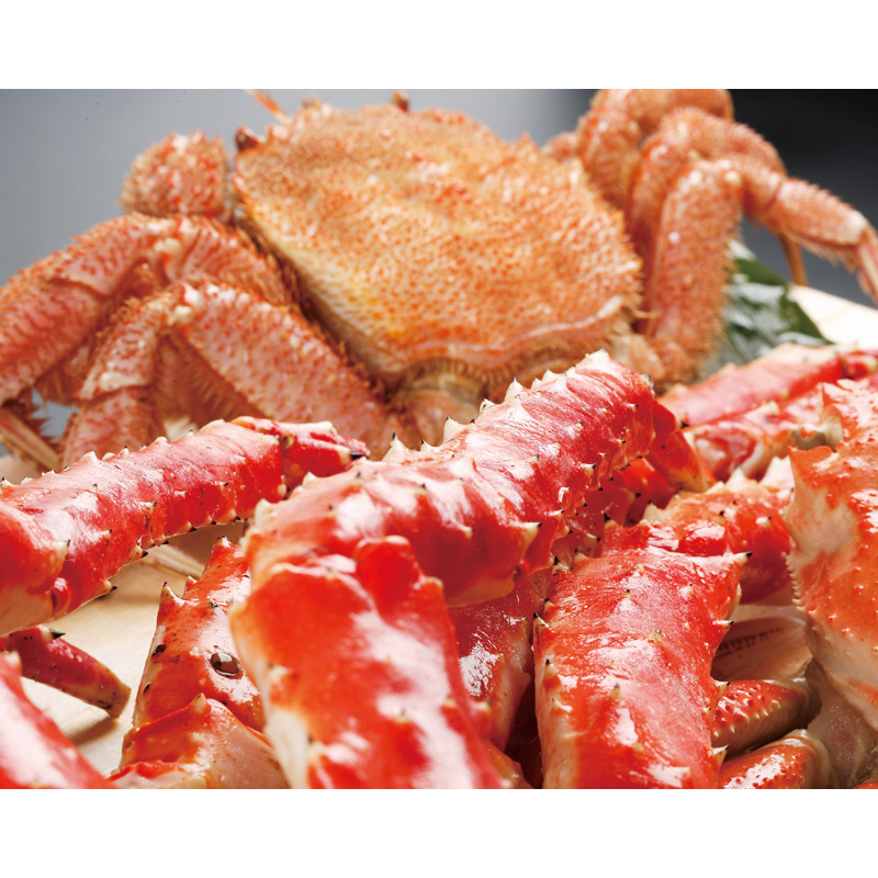 高級感あふれるたらばがに脚、食べやすさ抜群のずわいがに、そして身のびっしり詰まった旨さいちばんの毛がに。三大ガニが勢揃い。