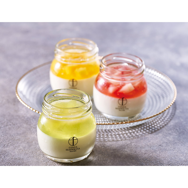 フレッシュな果物を使用した3種類のフルーツゼリーと口当たりなめらかな杏仁豆腐を瓶に閉じ込めました。いちご・マンゴー・メロンの果肉をトッピングした、見た目も楽しい彩り華やかなフルーツ杏仁をお楽しみください。