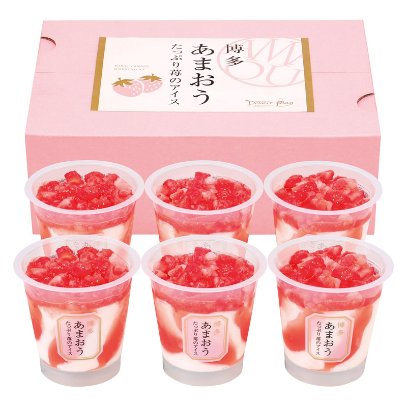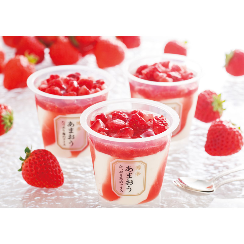 いちごの王様、博多あまおうのソースが入ったアイスの上に、ごろっと果肉をのせた、旬の味と素材感をたっぷり楽しめる、まさにいちご尽くしのアイスです。