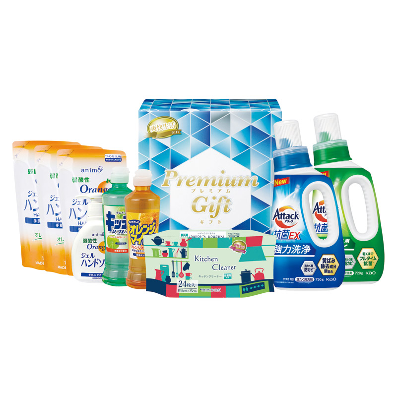 | 内容 | 花王アタック抗菌EX(750g)・花王アタック抗菌EX部屋干し用(720g)・弱酸性ジェルハンドソープ(200ml)・オレンジマイルドコンパクト(270ml)・キッチンクリーナー(24枚)・キッチンリフレッシュコンパクト(270ml)×各1、弱酸性ジェルハンドソープ詰め替え(190ml)×3 |