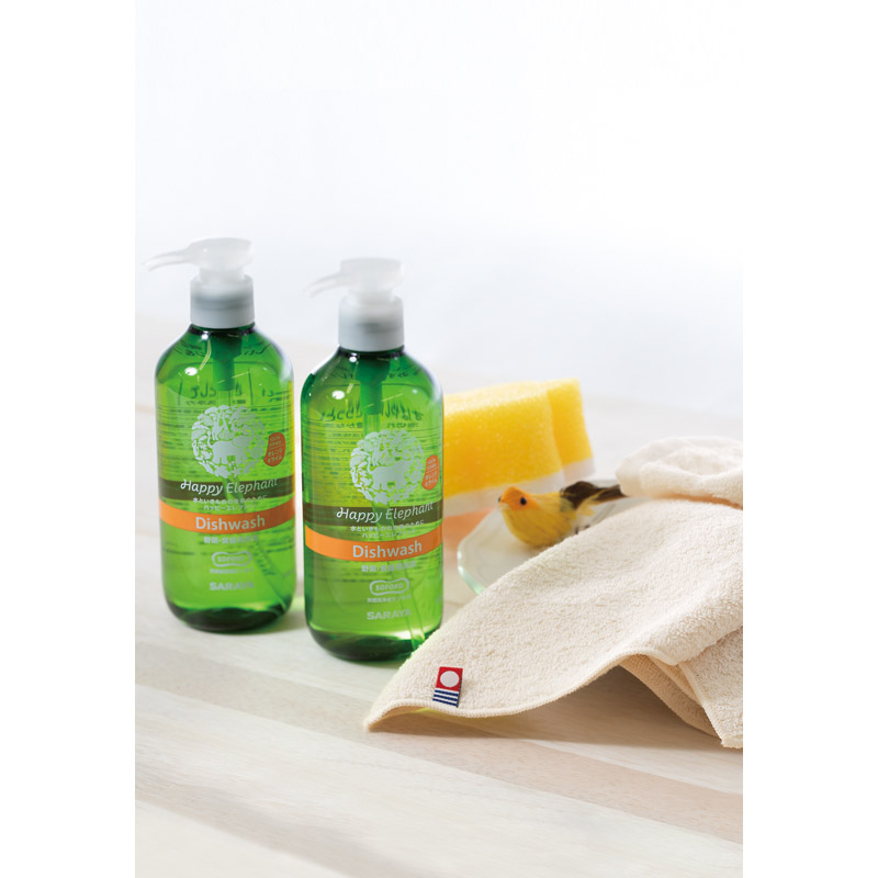植物と酵母から生まれた未来の洗剤”Happy Elephant”と、従来の精練加工よりもCO2排出削減を実現した無添加のやさしいファブリックのセットです。