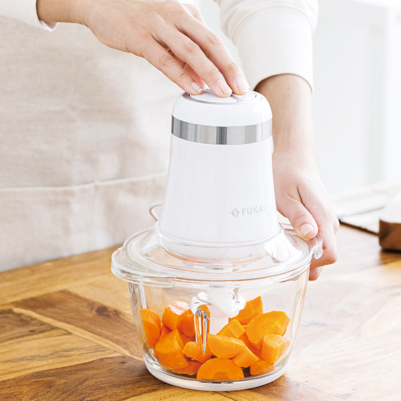 | コピー | みじん切り、きざむ、まぜるがワンプッシュで簡単にできる。ダブルブレード採用でスピーディに調理が可能。食材に合わせて高速/低速の使い分けができます。パーツは分解して水洗いOK。フタが閉まっていないと作動しない安全設計。 |