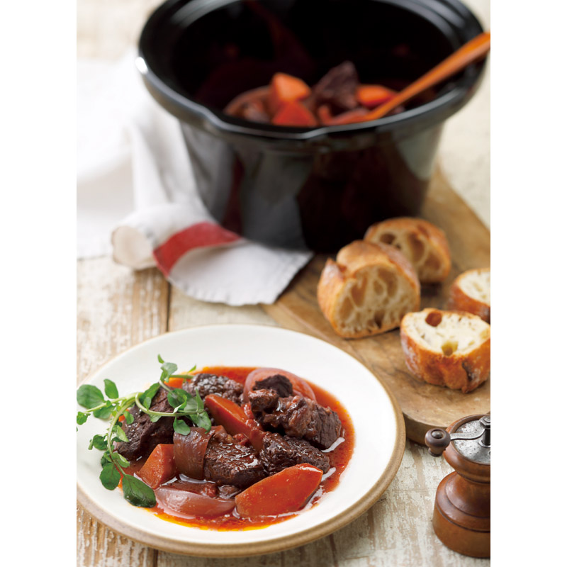 | コピー | 食材を入れてタイマーセット、あとはスイッチ1つで自動調理。火を使わないから安心。低温でじっくり煮込むから美味しい、しかもほったらかしでOK!デリッシュキッチン動画サイトのQRコード入りのレシピブック付き。●安全装置:温度ヒューズ 192℃●煮込み容量:約0.6~1.7㍑・目視容量目安:内鍋の3~8分目まで●タイマー:最大10時間 |