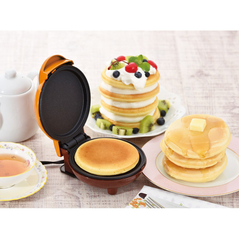 | コピー | 手のひらサイズのパンケーキメーカー。直径10㎝のプチパンケーキが約3分で作れます。プレートはフッ素樹脂塗装でお手入れ簡単。お好み焼きやマドレーヌなども作れるかんたんレシピ付き。 |