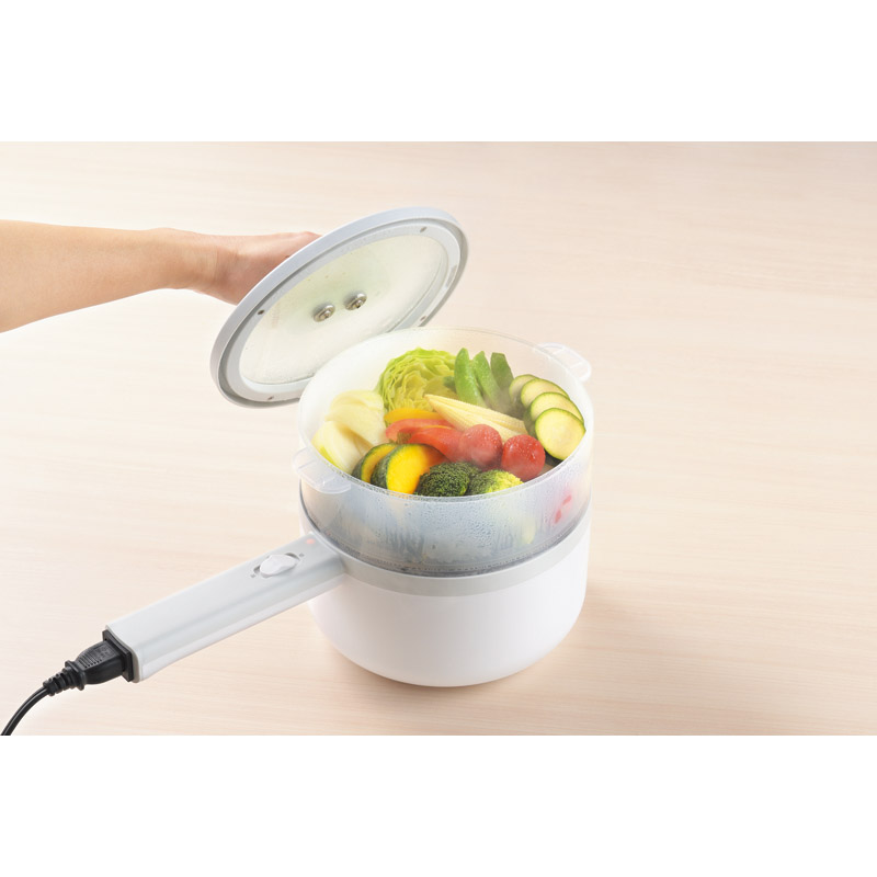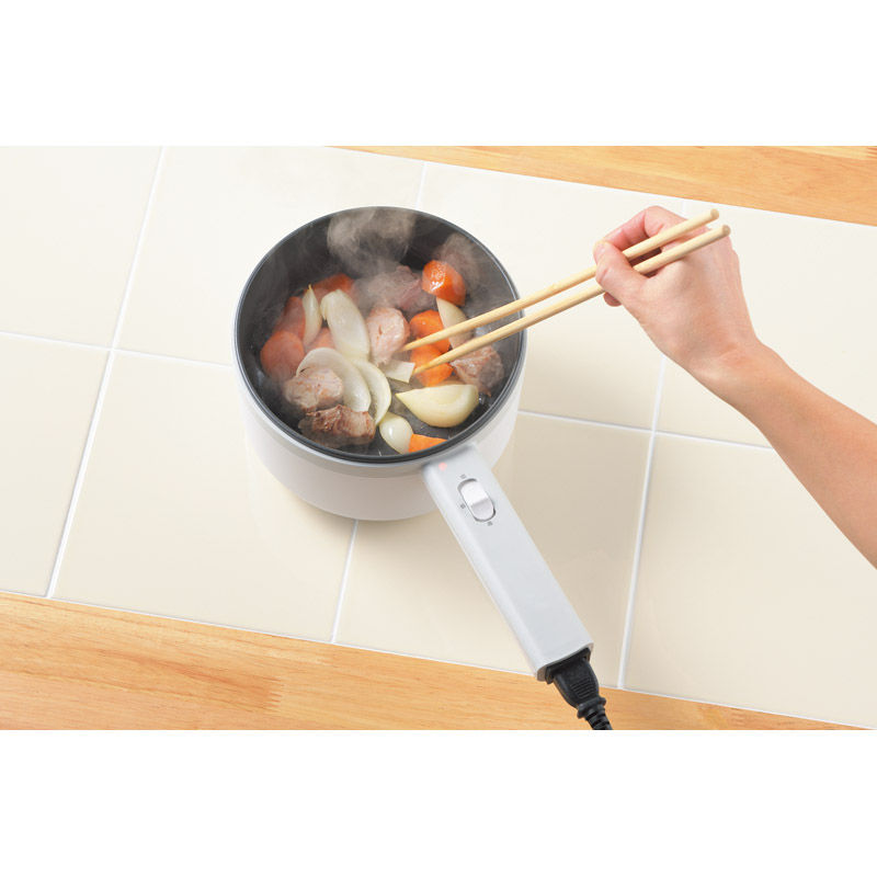 | コピー | 火を使わずに調理ができる片手鍋。蒸し器付きで蒸し料理にも対応。コンセントがあれば、コンロやIHがなくても、ダイニングで、オフィスで煮る・茹でるの調理ができます。鍋はふっ素加工なので簡単お手入れです。 |