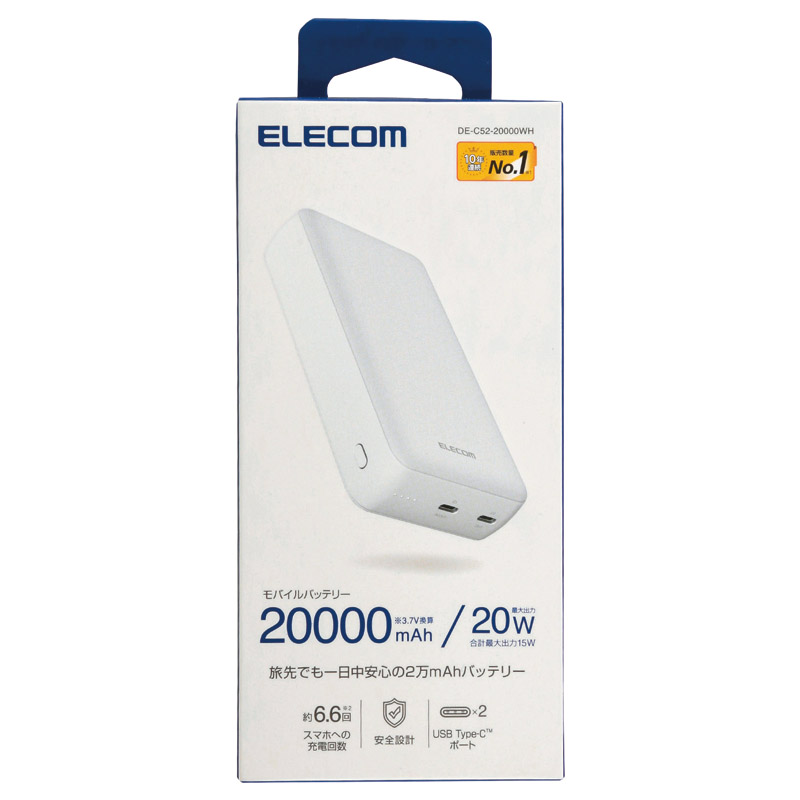 | 商品名 | ELECOM 20000mAh 2C PD20W モバイルバッテリー |