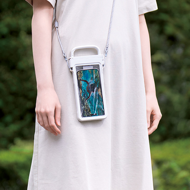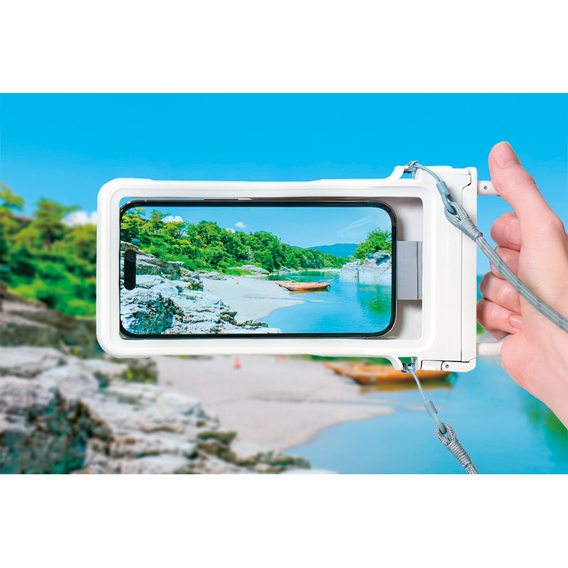 | コピー | 持ち運びやすく撮影しやすいハンドル付きカラビナ防水ケース。スマートフォン操作画面と防水ケース操作用窓の間に空気の層を作り、水中でもタッチ操作、カメラ撮影が可能です。水辺のレジャーやアウトドアなど大切なスマートフォンを守ります。■対応サイズ:高さ137~163×幅79×奥行9㎜以内■防水性能:IP67相当 |