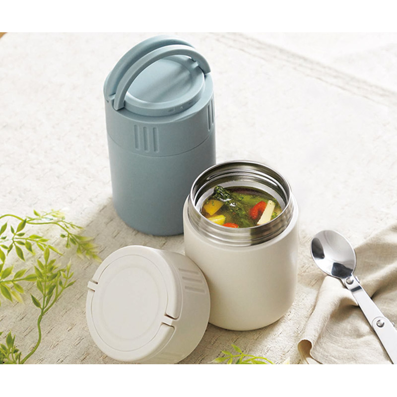 真空二重構造でランチまで食べ頃の温度をキープ!折りたたみ式のステンレススプーン付。 |