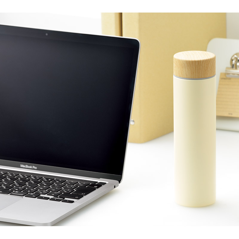 | コピー | 保温・保冷OK。美味しさ持続の断熱二重構造。スリムロングタイプで持ちやすく、携帯に便利。飲み口は口当たりの良い樹脂製。蓋はやさしい木目調デザイン。 |