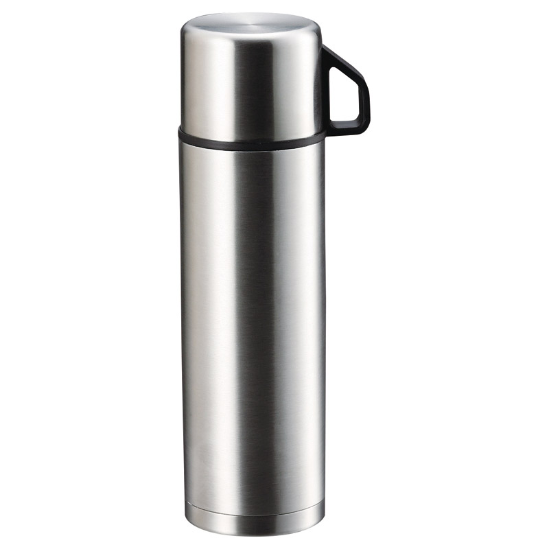 注ぎやすいワンタッチボタン。持ちやすいマグカップタイプの蓋付ステンレスボトルです。