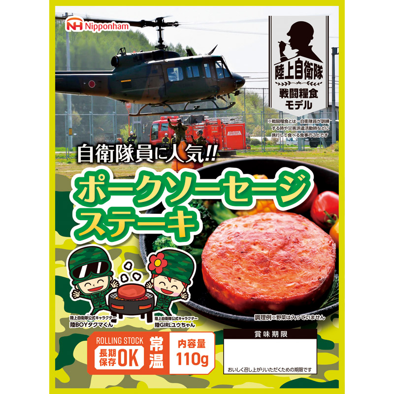 商品詳細:陸上自衛隊戦闘糧食モデル 防災食 ポークソーセージステーキ110g