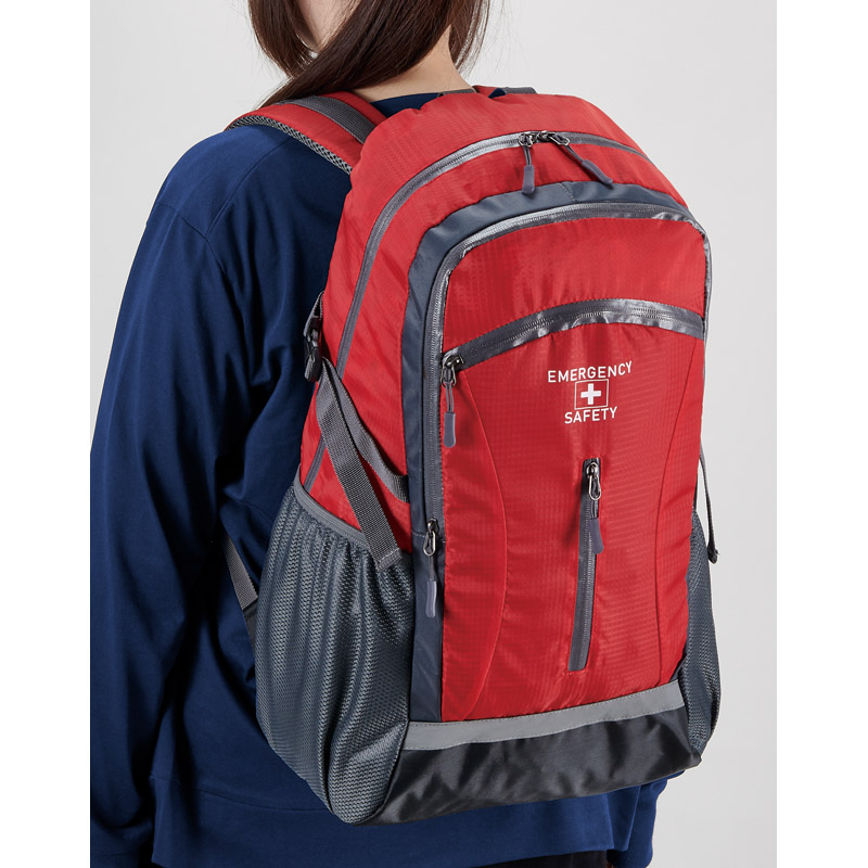 | 内容 | 避難用リュック(約200×300×515㎜)×1、9光ライト・ホイッスル・ウェットティッシュ(20枚)・防寒アルミシート・軍手・エイトバン(大小×各2)・首枕・アイマスク・耳栓・マスク・ウェットボディタオル・給水袋(3㍑)×各1、ポケットティッシュ・使い捨てカイロ×各2、携帯トイレ(大小兼用)(1P)×3 |