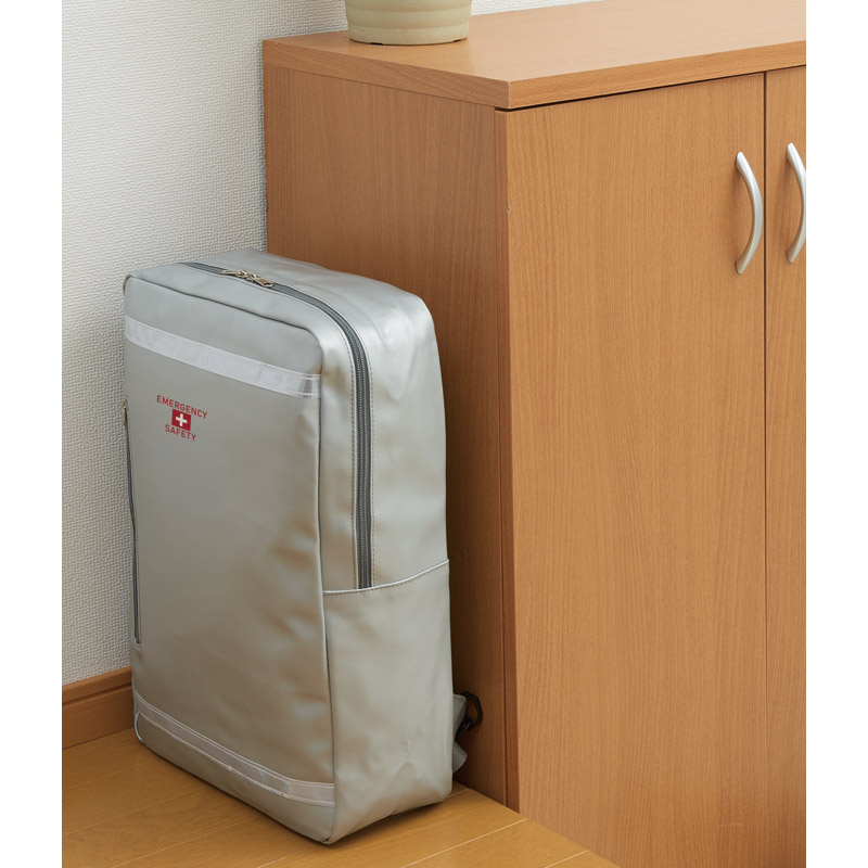 | コピー | スマートなデザインと防災イメージを両立させたリュックバッグタイプの避難セットです。置く場所を選ばず、ご家庭の玄関でも違和感なく、オフィスや物置でも長方型で保管スペースの無駄も少なく保管できます。 |