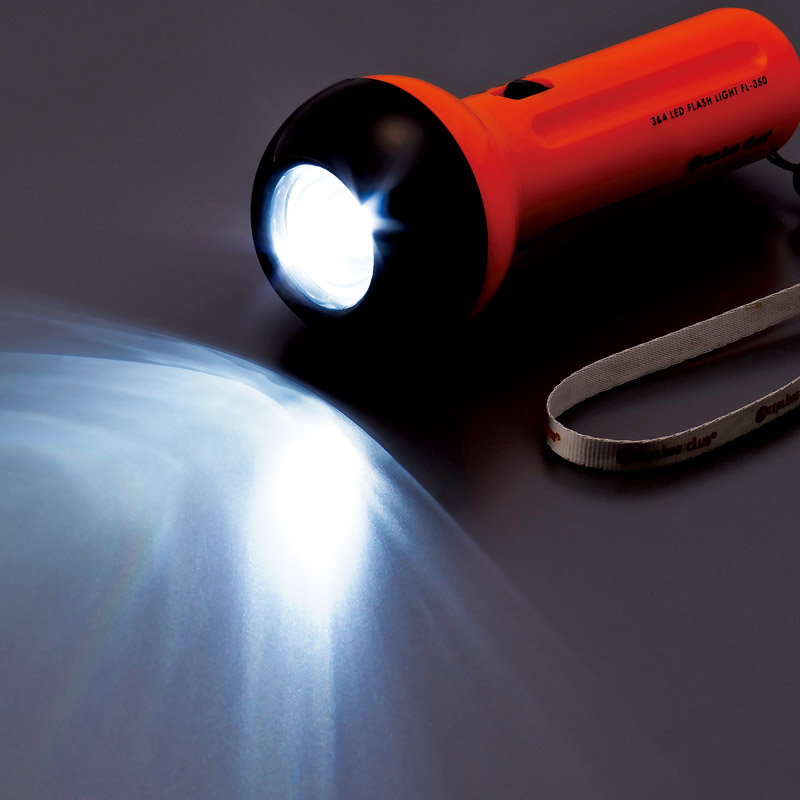 単3と単4乾電池どちらでも使える防災用コンパクトLEDライト。ストラップ付。LEDライト1灯。