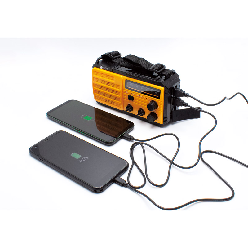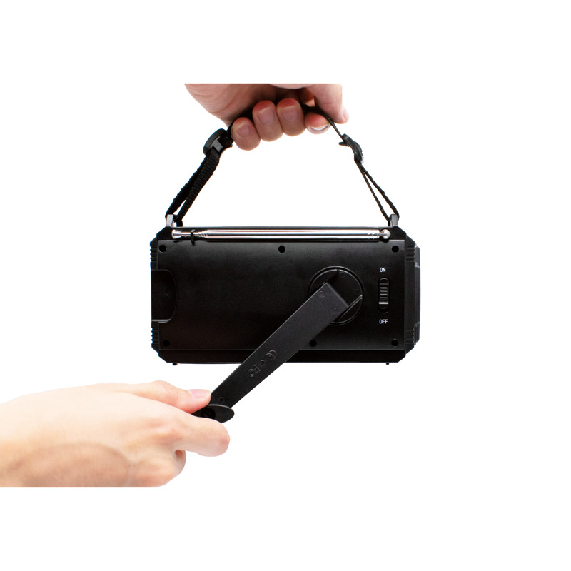 | コピー | 大容量8000mAh蓄電池内蔵、スマートフォン2台同時充電が可能な多機能ラジオ。●手回し・ソーラー・USBの3WAY充電●スマートフォン2台同時充電が可能な8000mAh蓄電池●FM/AMラジオ(ワイドFM対応・周囲に配慮しながら聞けるイヤホンジャックを装備)●3段階の明るさの懐中電灯●2段階の明るさの読書灯●音と光で危険を知らせるSOSアラーム |
