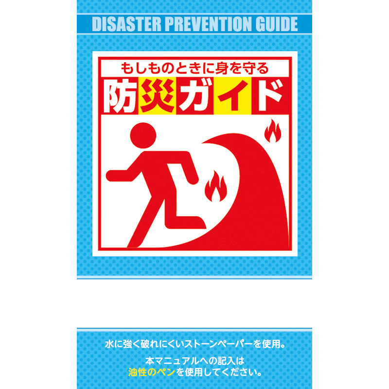 いざと言う時の為に、防災対策・応急手当てをマニュアルにしました。コンパクトに折りたためるのでサイフや手帳・名刺入れに入れて携帯出来ます。紙はストーンペーパーを使用していますので、水に強く破れにくいです。