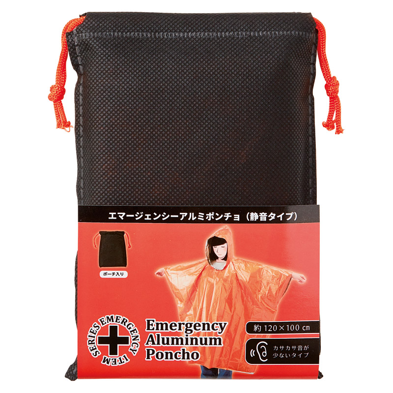 カサカサ音が少ないタイプ。ポンチョ型なので手が自由に使えて大変便利です。災害時や非常時にも、緊急用品として活用いただけます。
