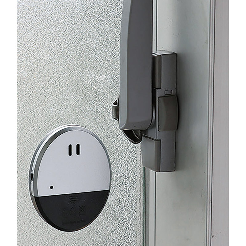 窓に貼り付けて簡単設置。振動を感知すると大音量でブザーが鳴ります。