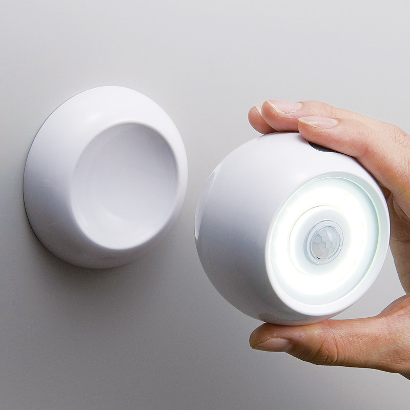 高輝度COBライト搭載。光、人感センサー付のセンサーライトです。台座にはマグネット付で取り付けも楽々。台座からは簡単に取り外す事ができ懐中電灯としても使用できます。