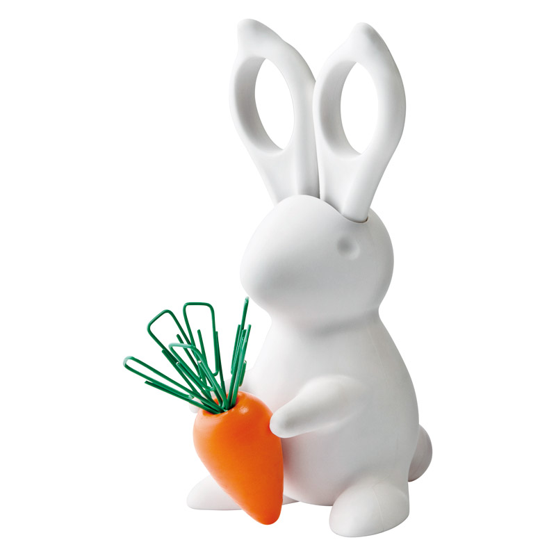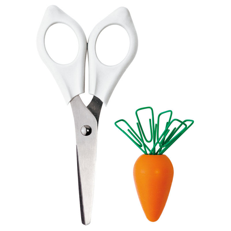 今にもニンジンを食べてしまいそうなはらペコウサギの耳をよく見るとなんと・・・ハサミ!マグネットのニンジンの葉は・・・クリップ!な驚きのデスクオーガナイザー。