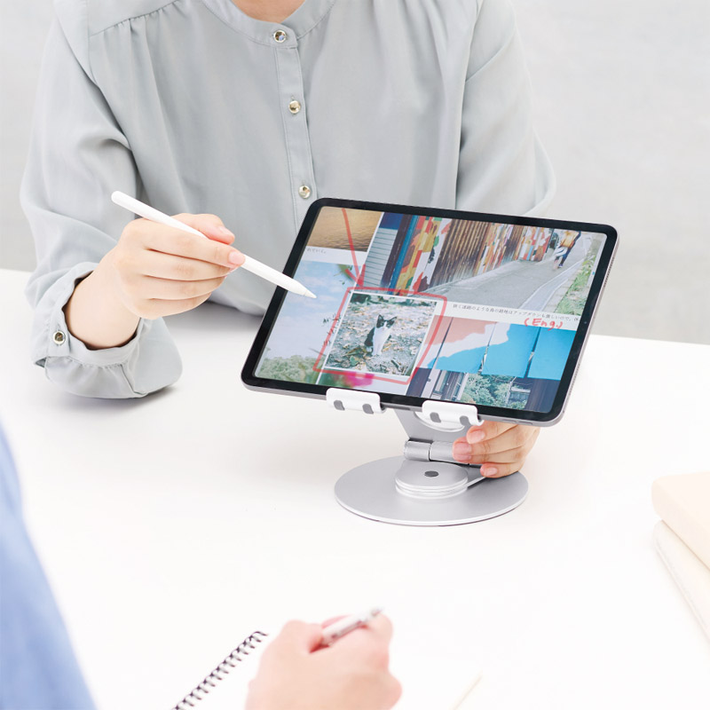 | コピー | 台座は360°回転でき、台座とアーム、アームとスタンド部の二ヶ所の角度を無段階に調整できるので、好みの高さや角度で使用できます。アームを折りたたんでコンパクトに収納できます。○対応サイズ:7~13インチのタブレット・スマートフォン○耐荷重:1㎏ |