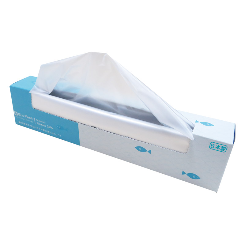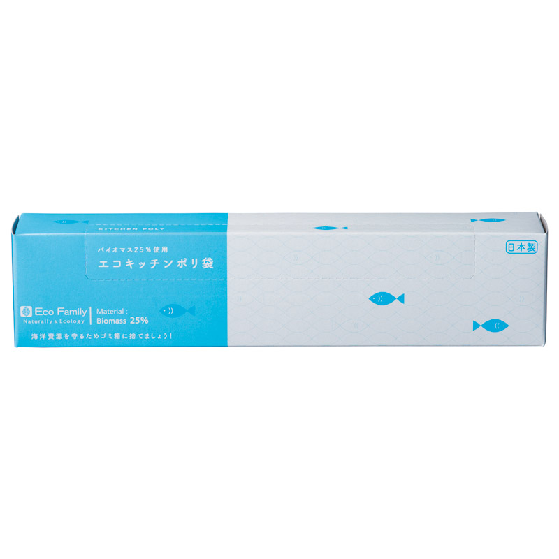キッチンポリ袋に、バイオマス25%配合した環境配慮タイプのキッチン用ポリ袋20枚BOXです。袋の製造から箱詰め作業まで全て国内生産の商品。食品保存袋にも最適です。