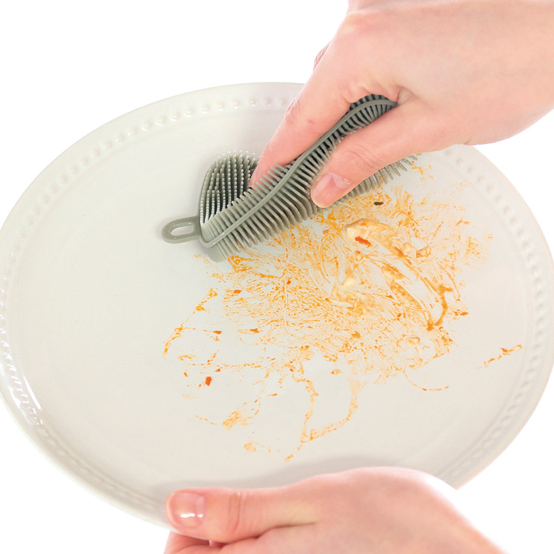 細かい突起が汚れをからめとる!洗剤いらずなので環境に優しいシリコーンたわし。