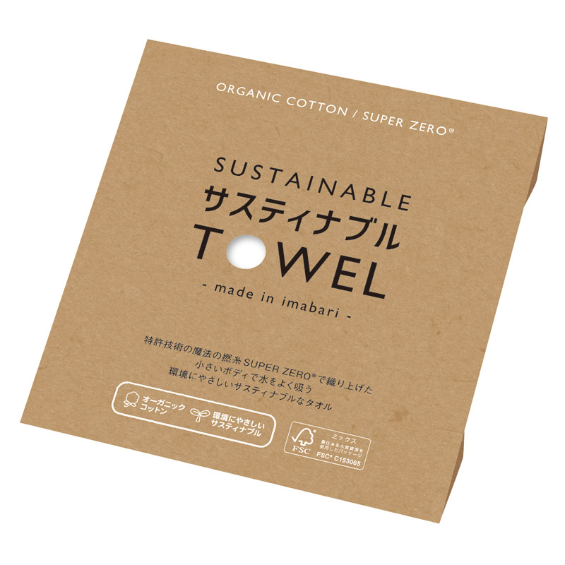 | コピー | ちょっとした傷などで廃棄処分するはずだったタオルのきれいなところをハンカチに生まれ変わらせたアップサイクル商品です。吸水性に優れた「SUPER ZERO®」の糸を使用しFSC認証パッケージ入りです。 |