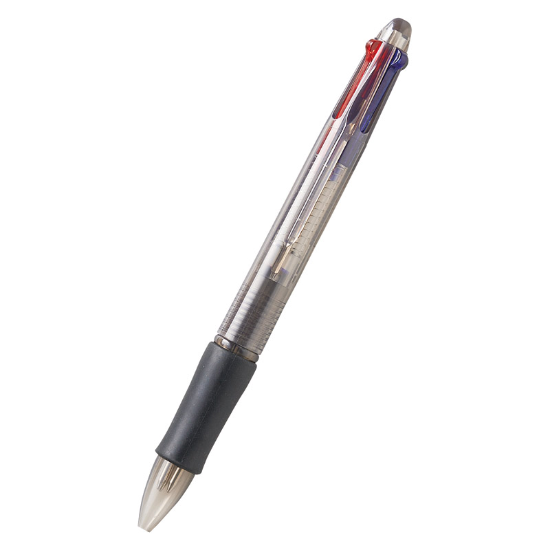 4芯で3色(黒×2、赤・青×各1)の多色ボールペン。