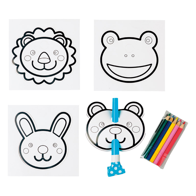 かわいい動物にぬりえが出来る面付吹き戻しです。