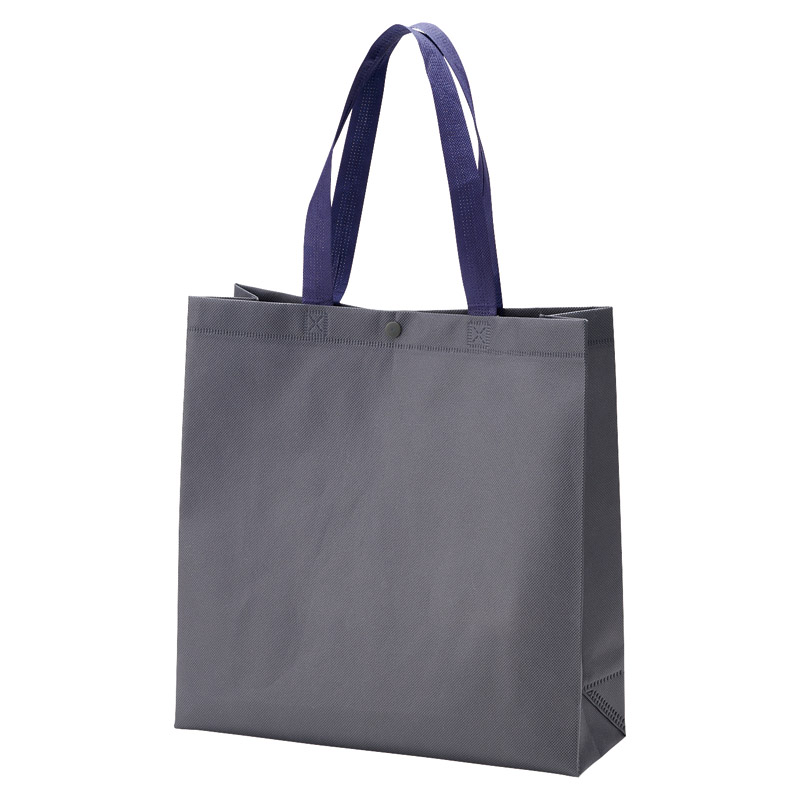 ボタン付きで中身の飛び出しが防げる、おしゃれなツートンカラーの不織布トートバッグです。