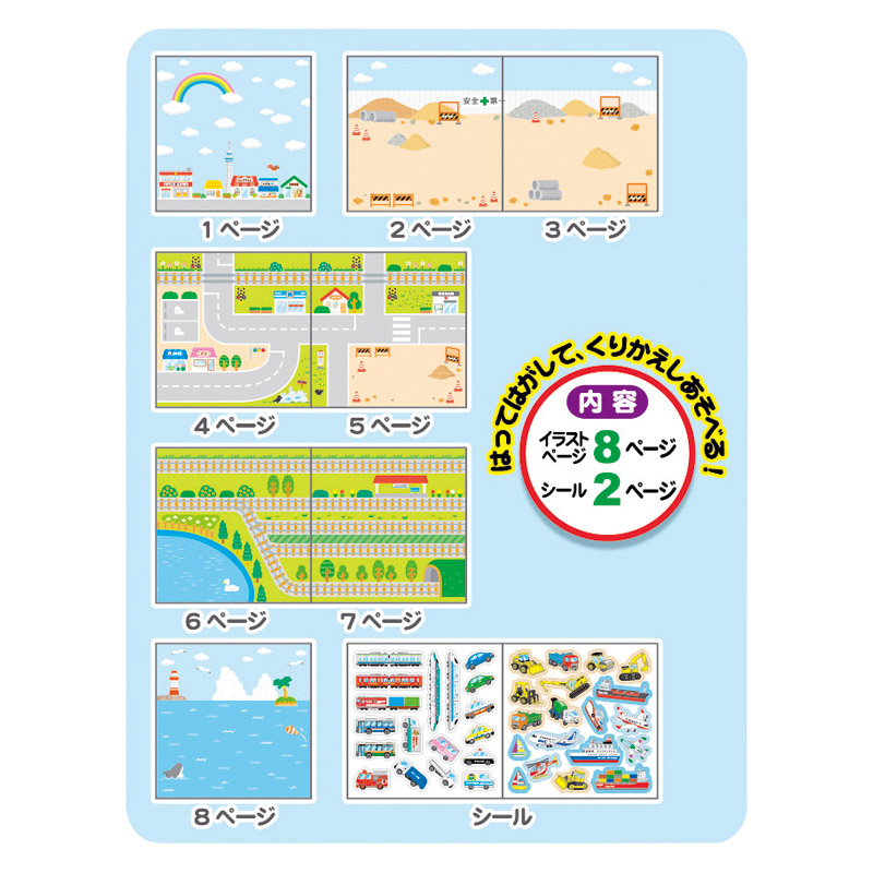 乗り物やアニマルのシールを台紙に貼って楽しめる、キッズに人気のシールセットです。